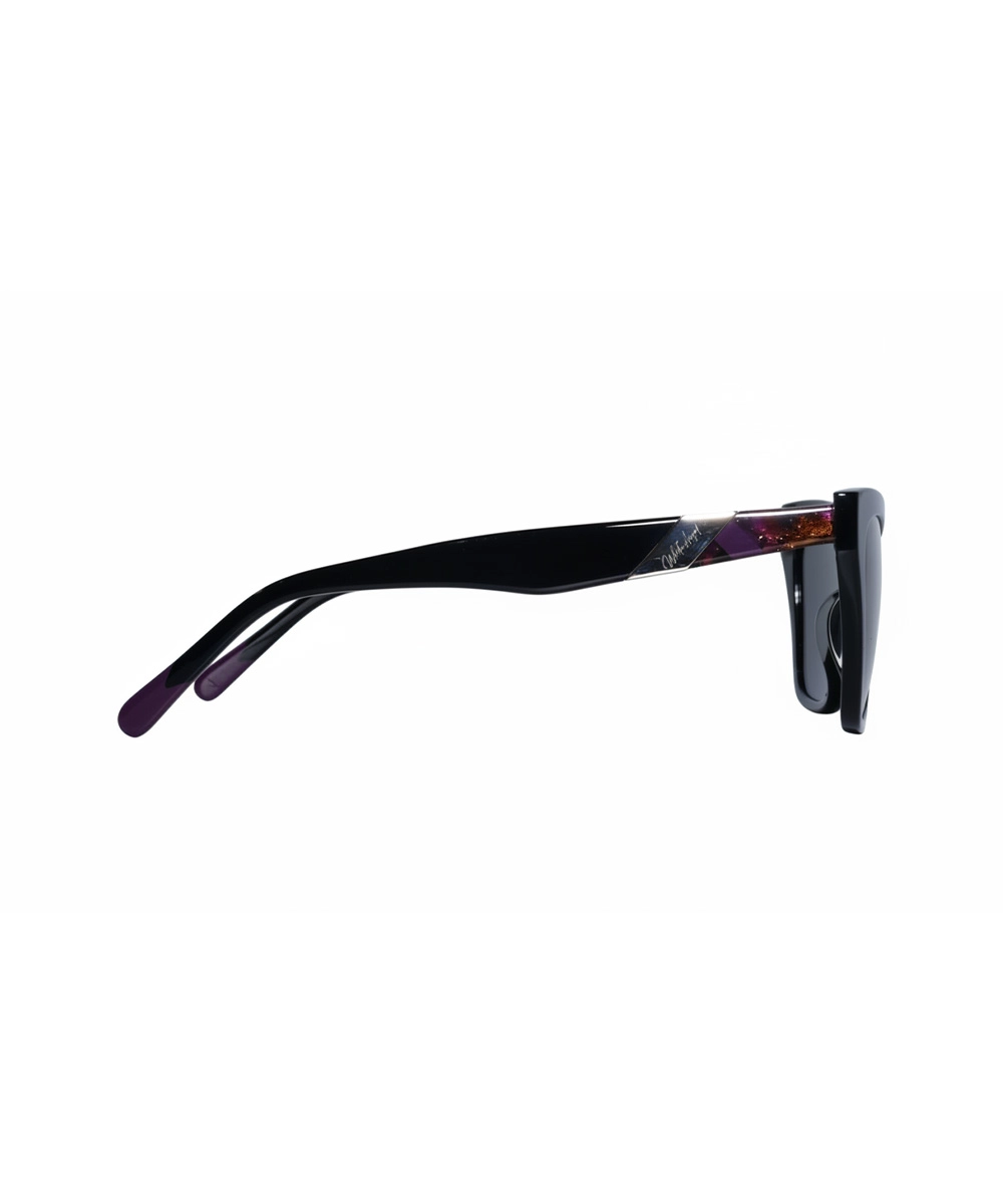 Make a bold fashion statement with these exquisite cat-eye sunglasses, designed for the modern woman who loves a touch of mystery. The frame features a classic high-gloss black front that transitions into stunning artistic temples, showcasing a unique blend of deep purple patterns and shimmering accents. This elegant contrast is highlighted by a sleek silver-tone hardware piece at the hinges, adding a sophisticated metallic touch. Equipped with dark-tinted lenses for maximum glare reduction, these sunglasses offer a perfect mix of avant-garde design and everyday functionality, ensuring you stay stylish while protecting your eyes from harsh sunlight.