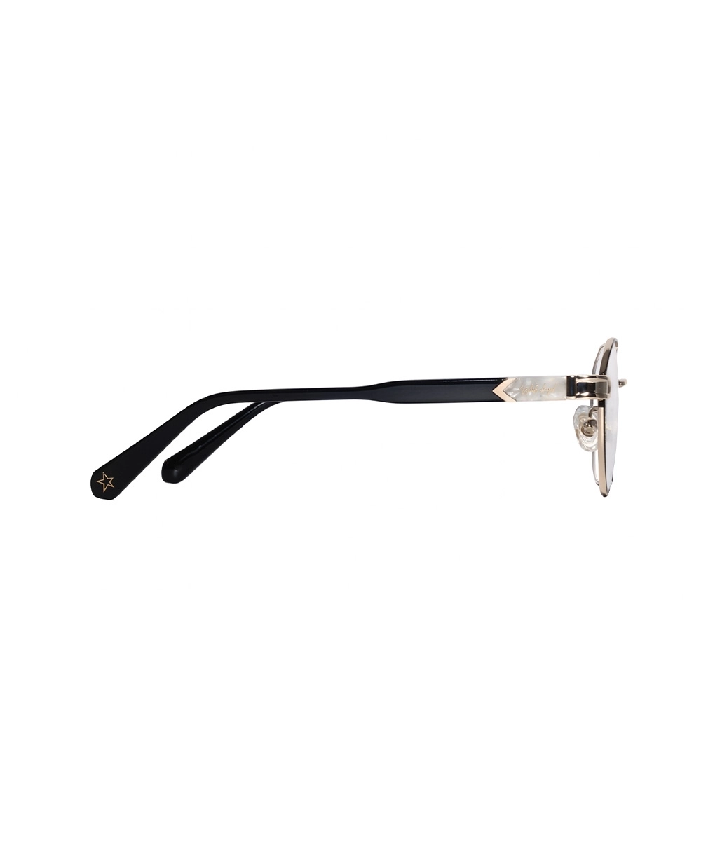 Featuring a classic circular silhouette and a black-and-gold color palette, this optical frame strikes an exceptional balance between retro style and modern fashion standards. The delicate metal body is crafted from lightweight, high-strength alloys to provide a weightless and comfortable experience for all-day wear. White pearlescent details on the temples add a sense of luxury and elegance, making this frame a standout choice for discerning individuals. Adjustable nose pads and soft ergonomic temples ensure outstanding stability on the face while preventing any pressure or skin irritation.