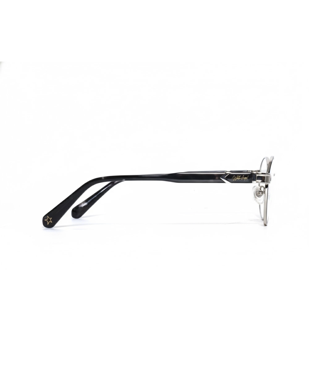 This optical frame, featuring a classic round design in metallic gunmetal, is an ideal choice for individuals seeking an artistic yet minimal aesthetic. Part of the “Metal Collection,” this frame is crafted with exquisite delicacy and is remarkably lightweight, ensuring zero fatigue during extended daily wear. The temples are adorned with a blue and grey mosaic watercolor pattern, creating a stunning visual contrast with the metallic front for a modern touch. Sophisticated hinges and adjustable nose pads guarantee flexibility and a stable fit on the face, providing the user with a truly comfortable viewing experience.